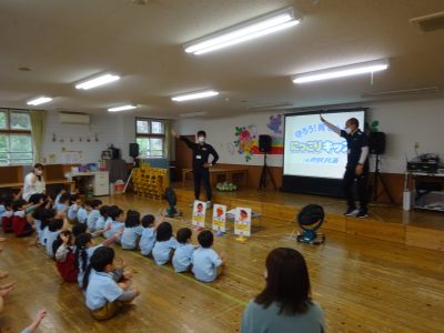 今日はにっこりキッズキャラバンの方が来て下さり、様々なお約束について動画やダンスで子どもたちに教えてくれました!