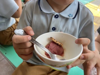 毎年楽しみにしているおやつの一つ、シャーベットが今日のおやつでした。